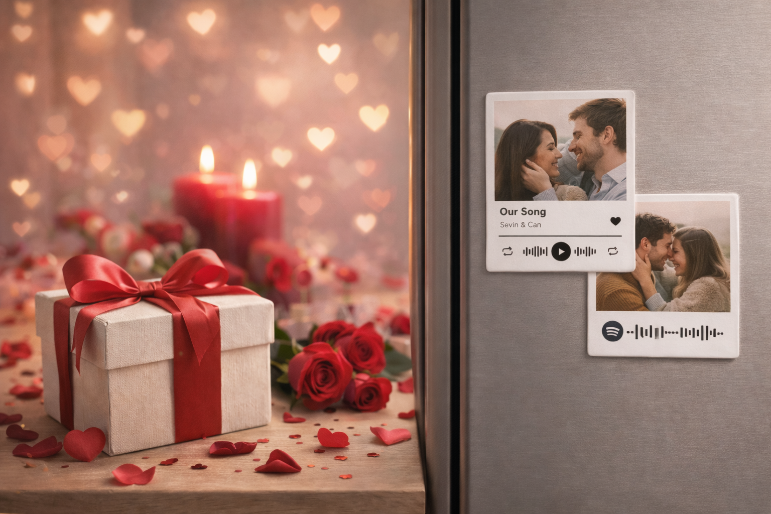 Bir fotoğraf, bir şarkı, sonsuz hatıra. Sevdiğin fotoğraf ve şarkıyla hazırlanan bu magnet, her baktığında aynı duyguyu yeniden yaşatır.